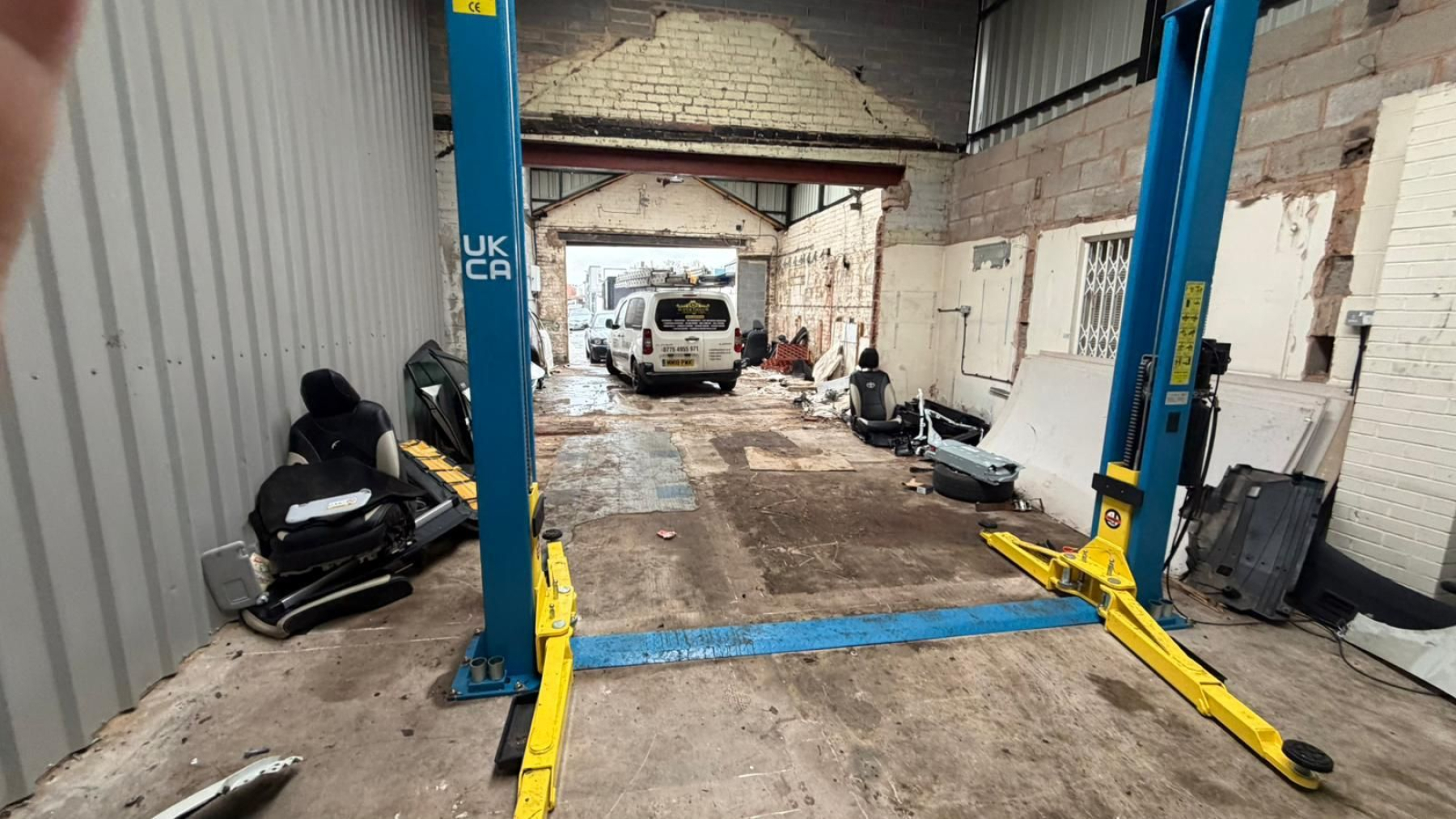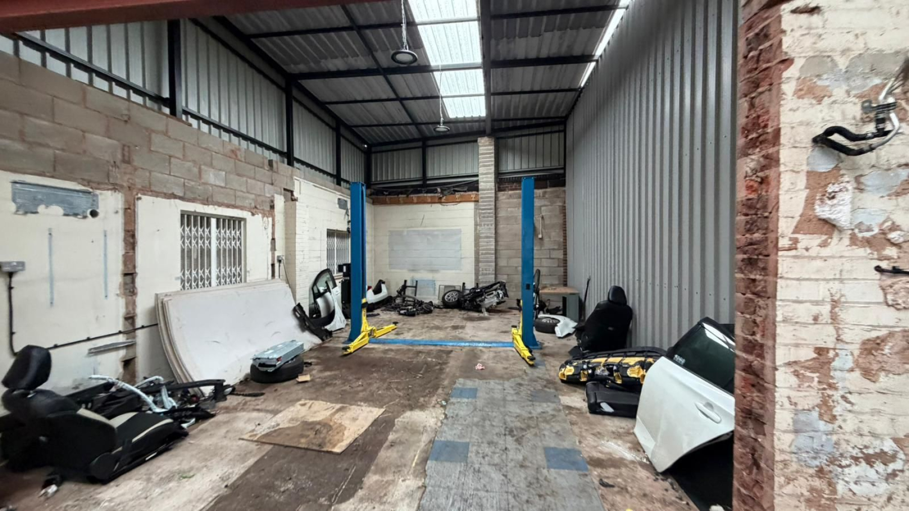 The property benefits from a vehicle ramp, providing practical access for loading, unloading, or automotive-related use. The unit is of solid construction, offering a secure working environment and flexible internal space suitable for storage, light industrial, or operational use.